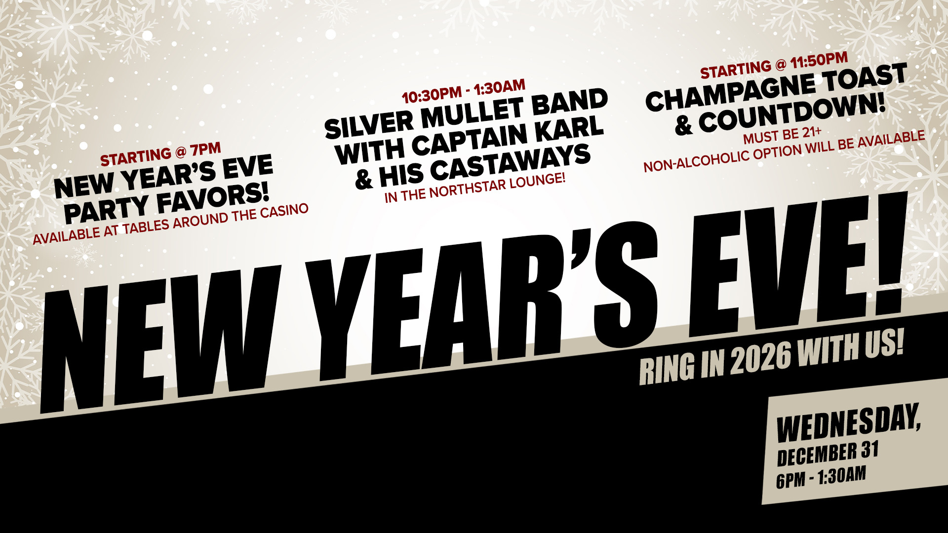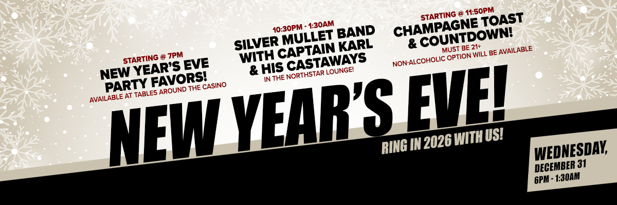 Wednesday, December 31st 6PM - 1:30AM in the Northstar Lounge